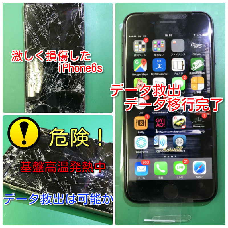 ほかは・・・ 相当激しい損傷で既にiPhone自体が手で持っていられないほどの熱を発し 新機種に交換は逃れないがデータを何とかして欲しいとか