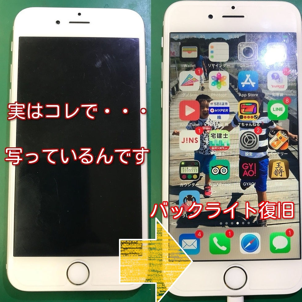 今回は・・・ iPhone6sが突然画面表示出来ないとご相談 通常パネルの不良で写らないことがありますが 無傷の時の故障の方が怖いんです 内部を点検して基板破損の可能性が高くなりました テストパネルを装着し起動させると うっす~ら りんごが映るっていましたので バックライトの不良でまず間違えないかと 3日ほどお預かりさせて頂き
